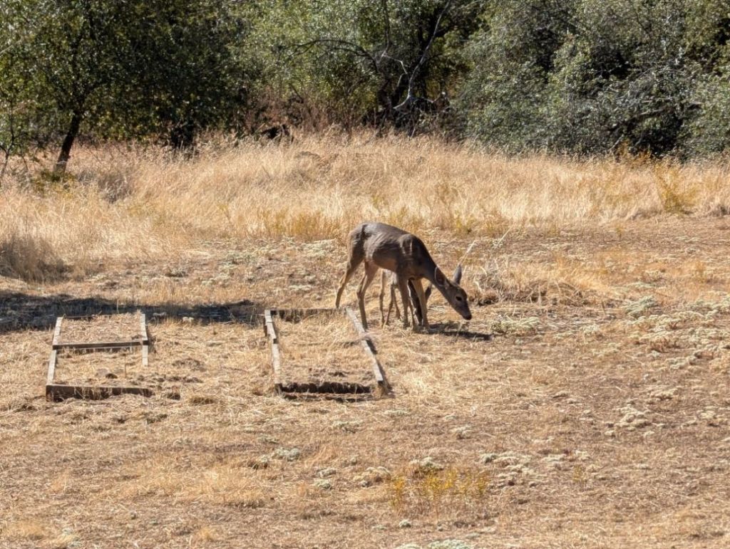 It’s October 18th. We just got our first big rain a couple of days ago, but nothing has started to grow yet. Mama deer and her fawn come to forage in the compost pile, and she’s practically a skeleton. The fawn is thinner, but still healthy looking.